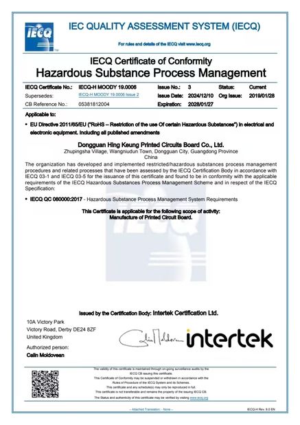 Standard: IECQNumber: IECQ-H MOODY 19.0006Issue Date: 2024-12-10Expiry Date: 2028-01-27