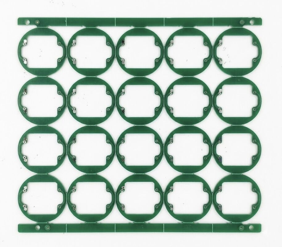 XingQiang PCB Custom 2-Layer FR4 Circular PCB Array. Features high-precision circular cutout design, ENIG surface finish for superior solderability, and green solder mask. Manufactured from durable FR-4 material with UL94 V-0 flame resistance. Ideal for NFC antennas, sensor modules, and high-volume SMT assembly. 100% electrical tested.